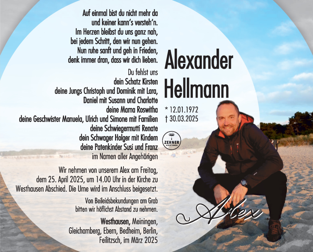 Hier finden Sie alle Traueranzeigen aus der Zeitung, die bisher für Alexander Hellmann erschienen sind. Weitere Traueranzeigen, die in der Zeitung erscheinen, werden hier ebenfalls aufgelistet