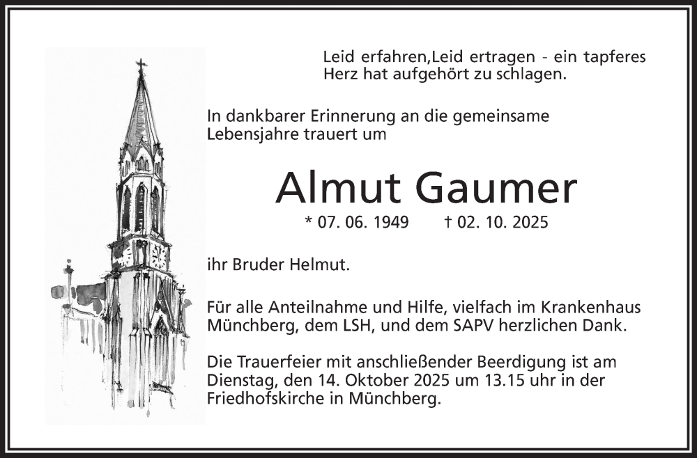 Hier finden Sie alle Traueranzeigen aus der Zeitung, die bisher für Almut Gaumer erschienen sind. Weitere Traueranzeigen, die in der Zeitung erscheinen, werden hier ebenfalls aufgelistet