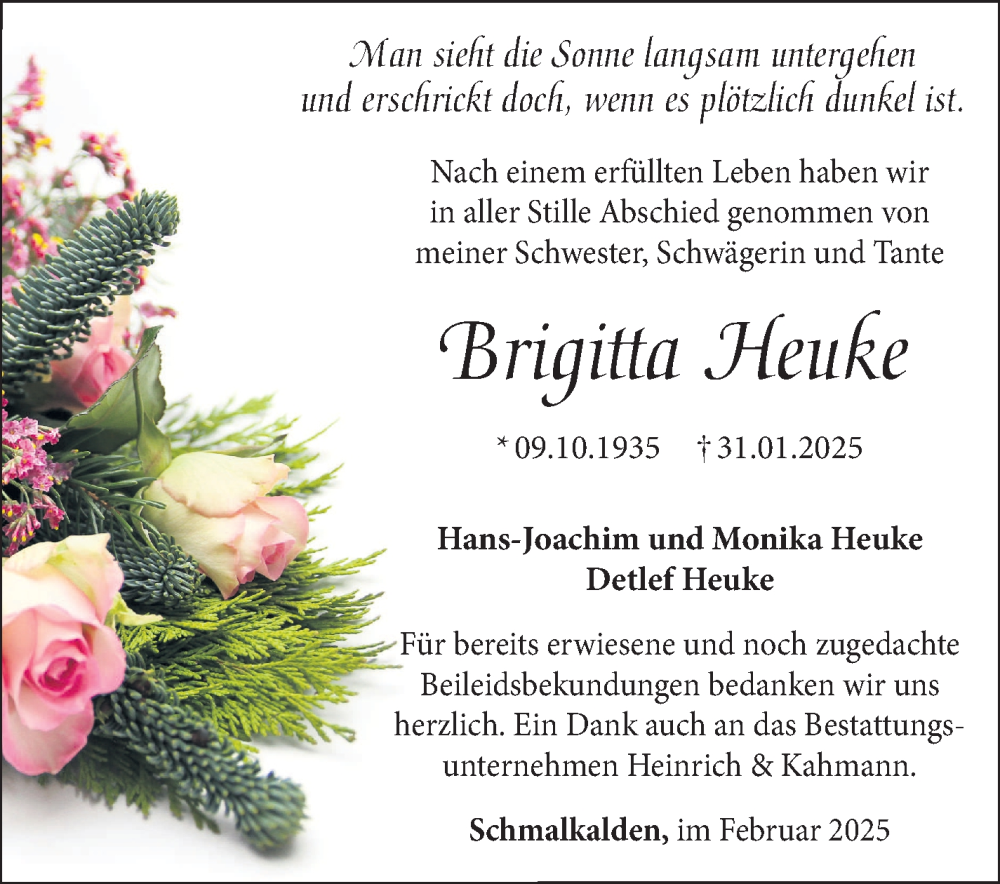 Hier finden Sie alle Traueranzeigen aus der Zeitung, die bisher für Brigitta Heuke erschienen sind. Weitere Traueranzeigen, die in der Zeitung erscheinen, werden hier ebenfalls aufgelistet
