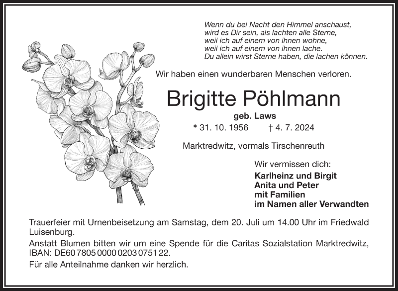 Hier finden Sie alle Traueranzeigen aus der Zeitung, die bisher für Brigitte Pöhlmann erschienen sind. Weitere Traueranzeigen, die in der Zeitung erscheinen, werden hier ebenfalls aufgelistet