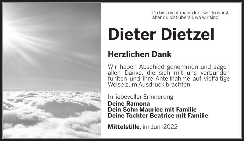 Hier finden Sie alle Traueranzeigen aus der Zeitung, die bisher für Dieter Dietzel erschienen sind. Weitere Traueranzeigen, die in der Zeitung erscheinen, werden hier ebenfalls aufgelistet
