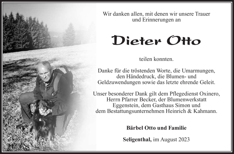 Hier finden Sie alle Traueranzeigen aus der Zeitung, die bisher für Dieter Otto erschienen sind. Weitere Traueranzeigen, die in der Zeitung erscheinen, werden hier ebenfalls aufgelistet