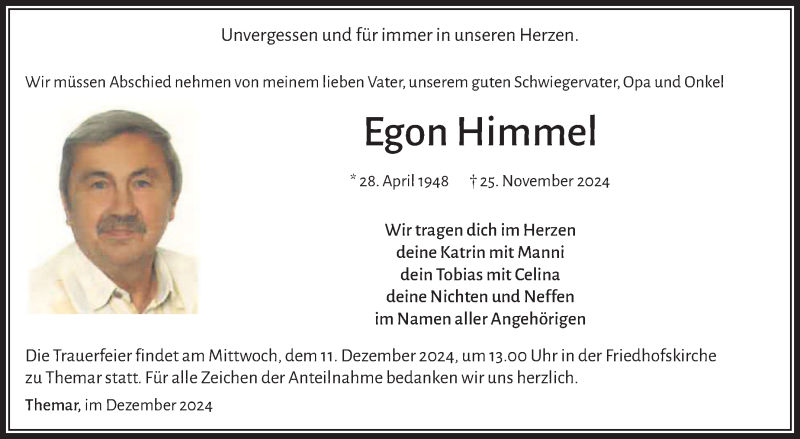 Hier finden Sie alle Traueranzeigen aus der Zeitung, die bisher für Egon Himmel erschienen sind. Weitere Traueranzeigen, die in der Zeitung erscheinen, werden hier ebenfalls aufgelistet