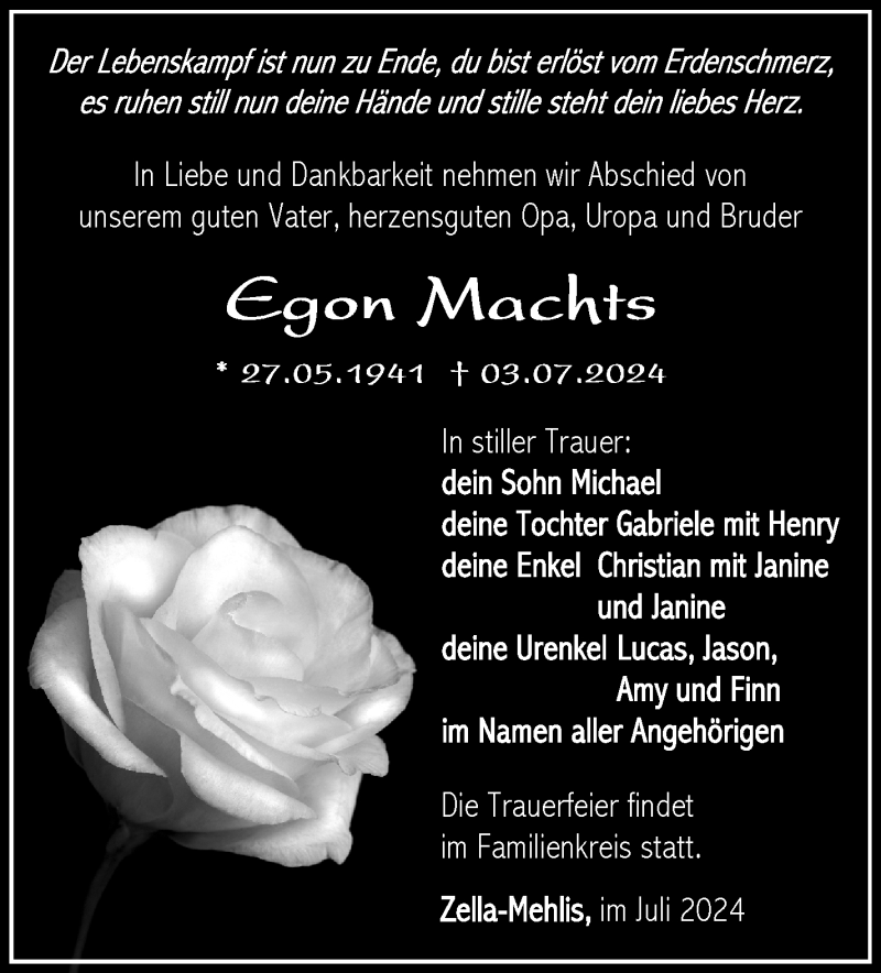 Hier finden Sie alle Traueranzeigen aus der Zeitung, die bisher für Egon Machts erschienen sind. Weitere Traueranzeigen, die in der Zeitung erscheinen, werden hier ebenfalls aufgelistet