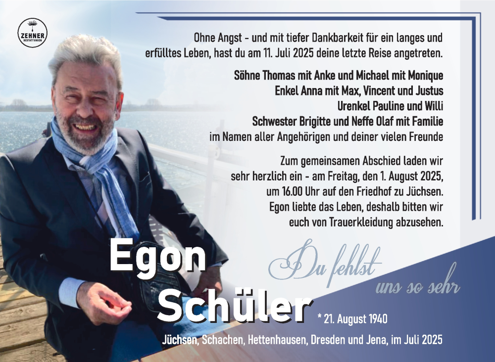 Hier finden Sie alle Traueranzeigen aus der Zeitung, die bisher für Egon Schüler erschienen sind. Weitere Traueranzeigen, die in der Zeitung erscheinen, werden hier ebenfalls aufgelistet