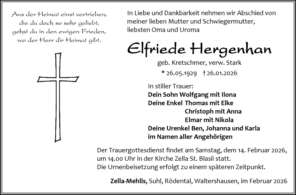 Hier finden Sie alle Traueranzeigen aus der Zeitung, die bisher für Elfriede Hergenhan erschienen sind. Weitere Traueranzeigen, die in der Zeitung erscheinen, werden hier ebenfalls aufgelistet