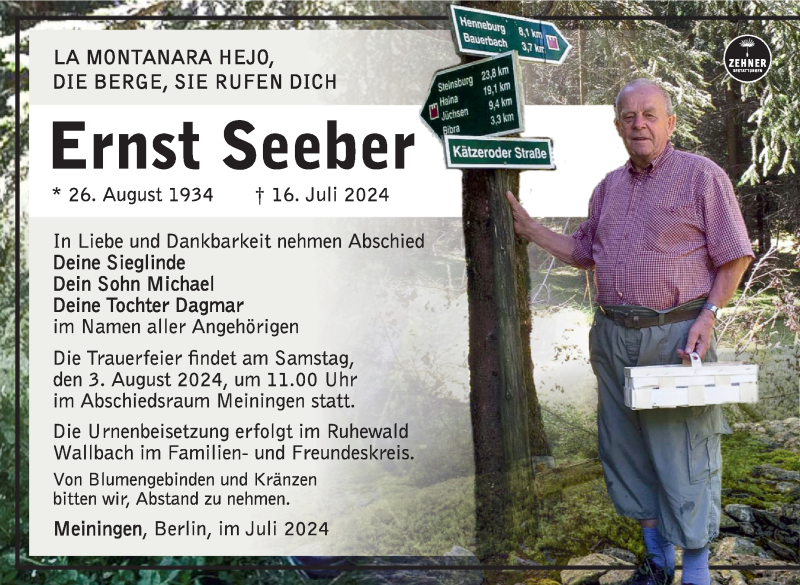 Hier finden Sie alle Traueranzeigen aus der Zeitung, die bisher für Ernst Seeber erschienen sind. Weitere Traueranzeigen, die in der Zeitung erscheinen, werden hier ebenfalls aufgelistet