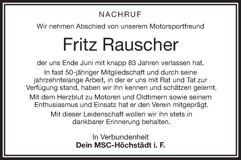 Hier finden Sie alle Traueranzeigen aus der Zeitung, die bisher für Fritz Rauscher erschienen sind. Weitere Traueranzeigen, die in der Zeitung erscheinen, werden hier ebenfalls aufgelistet