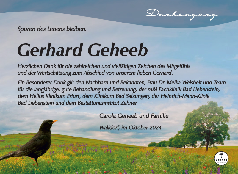 Hier finden Sie alle Traueranzeigen aus der Zeitung, die bisher für Gerhard Geheeb erschienen sind. Weitere Traueranzeigen, die in der Zeitung erscheinen, werden hier ebenfalls aufgelistet