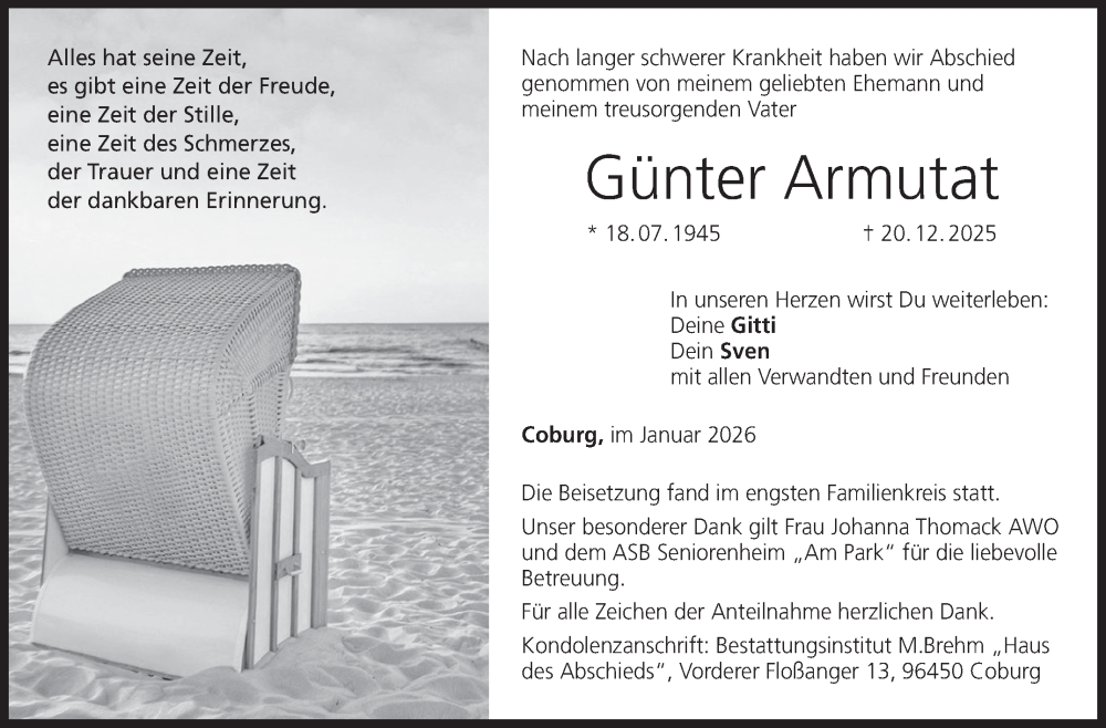 Hier finden Sie alle Traueranzeigen aus der Zeitung, die bisher für Günter Armutat erschienen sind. Weitere Traueranzeigen, die in der Zeitung erscheinen, werden hier ebenfalls aufgelistet