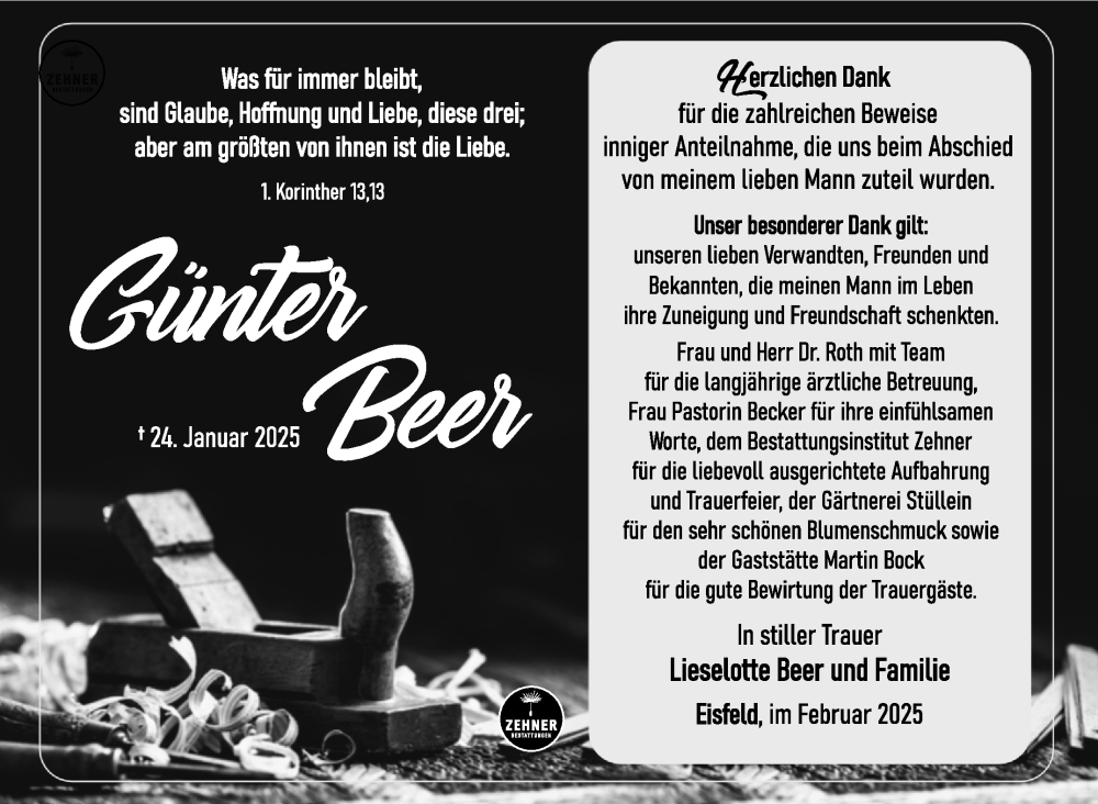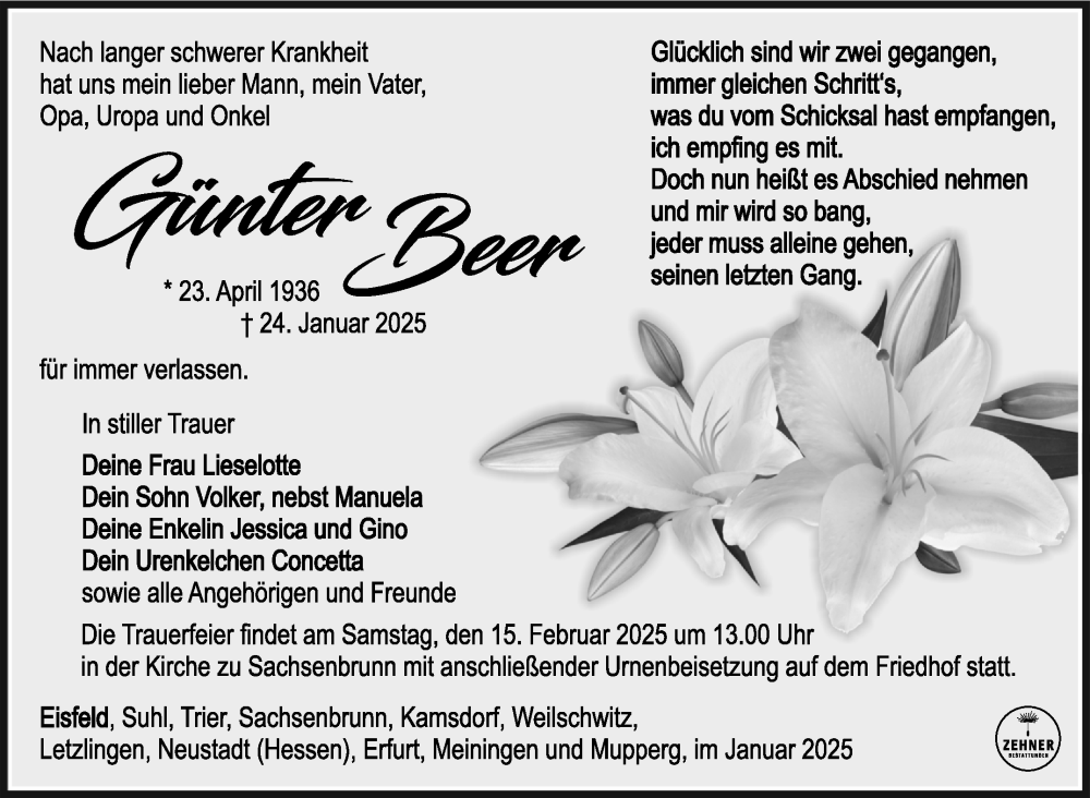 Hier finden Sie alle Traueranzeigen aus der Zeitung, die bisher für Günter Beer erschienen sind. Weitere Traueranzeigen, die in der Zeitung erscheinen, werden hier ebenfalls aufgelistet