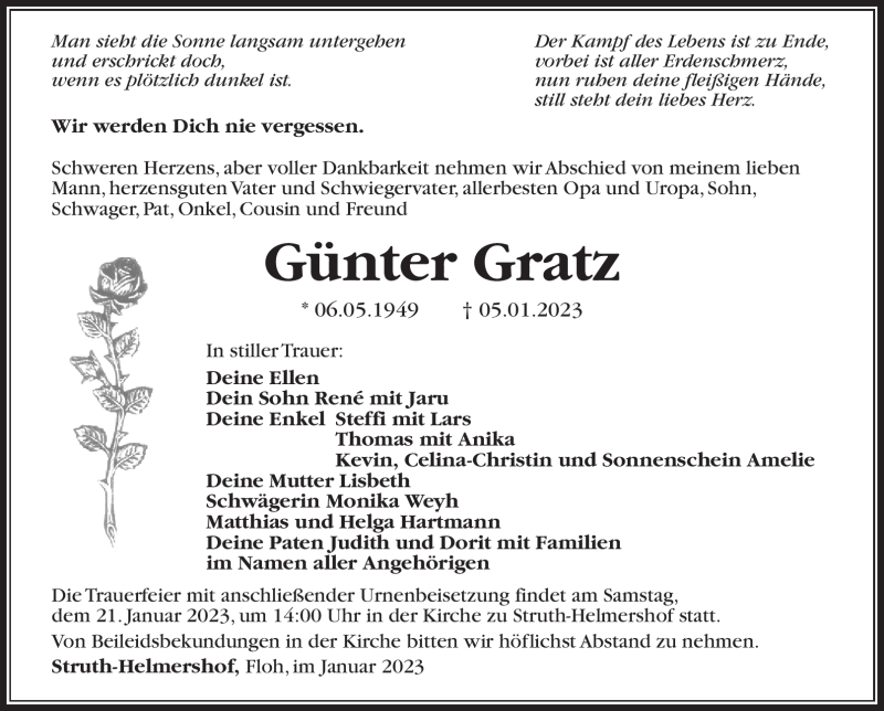 Hier finden Sie alle Traueranzeigen aus der Zeitung, die bisher für Günter Gratz erschienen sind. Weitere Traueranzeigen, die in der Zeitung erscheinen, werden hier ebenfalls aufgelistet