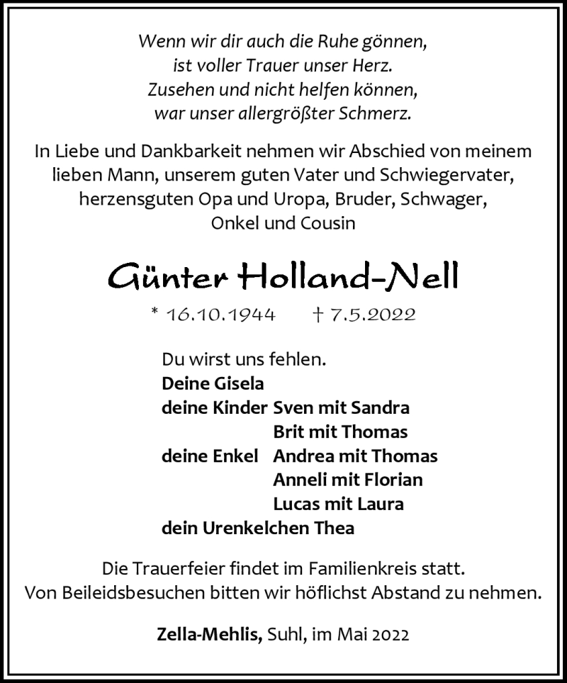 Hier finden Sie alle Traueranzeigen aus der Zeitung, die bisher für Günter Holland-Nell erschienen sind. Weitere Traueranzeigen, die in der Zeitung erscheinen, werden hier ebenfalls aufgelistet