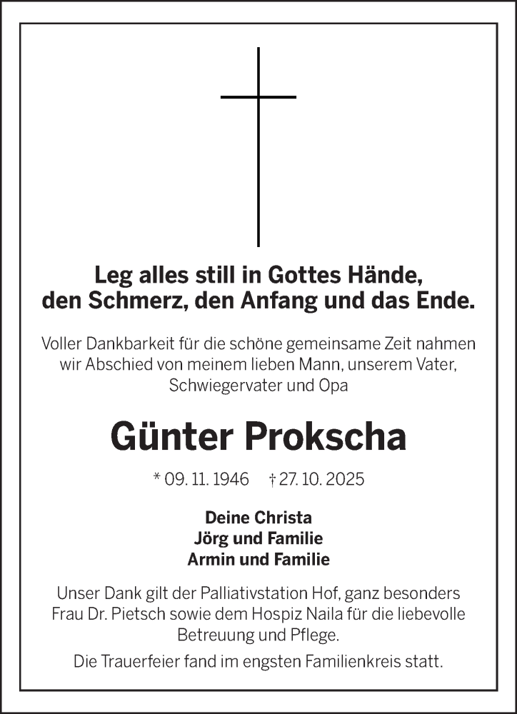 Hier finden Sie alle Traueranzeigen aus der Zeitung, die bisher für Günter Prokscha erschienen sind. Weitere Traueranzeigen, die in der Zeitung erscheinen, werden hier ebenfalls aufgelistet