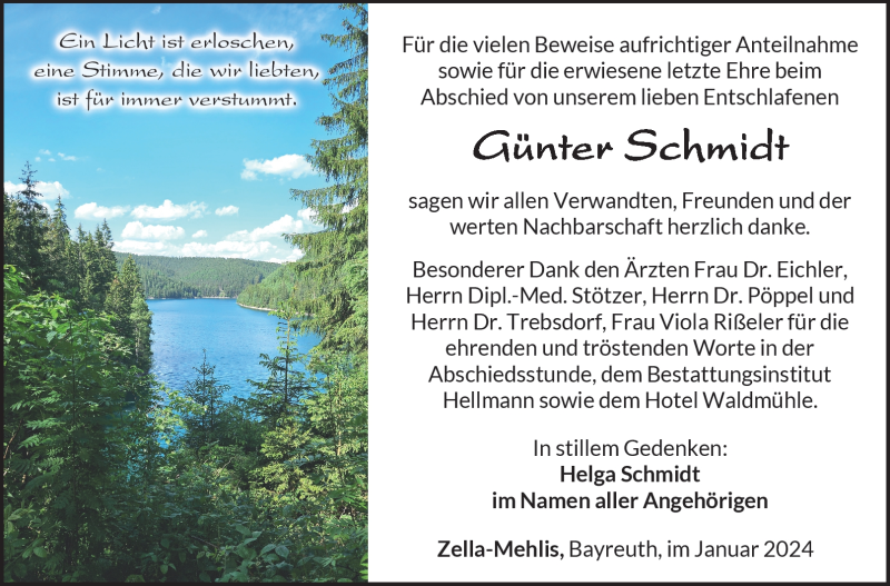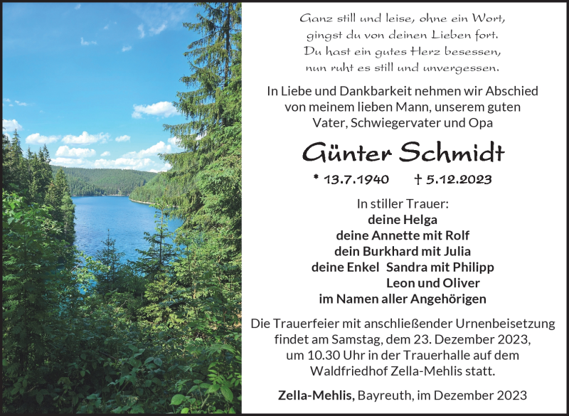 Hier finden Sie alle Traueranzeigen aus der Zeitung, die bisher für Günter Schmidt erschienen sind. Weitere Traueranzeigen, die in der Zeitung erscheinen, werden hier ebenfalls aufgelistet