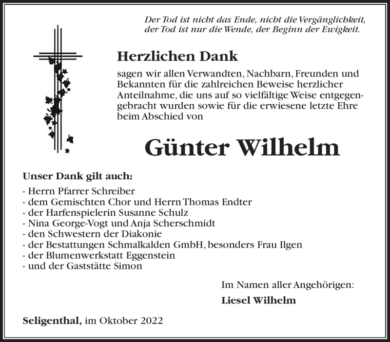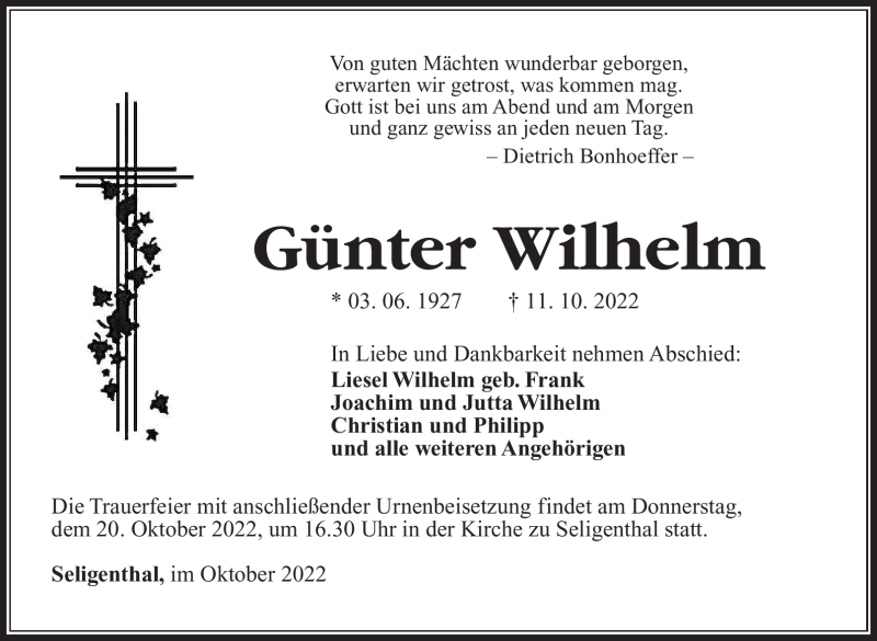 Hier finden Sie alle Traueranzeigen aus der Zeitung, die bisher für Günter Wilhelm erschienen sind. Weitere Traueranzeigen, die in der Zeitung erscheinen, werden hier ebenfalls aufgelistet