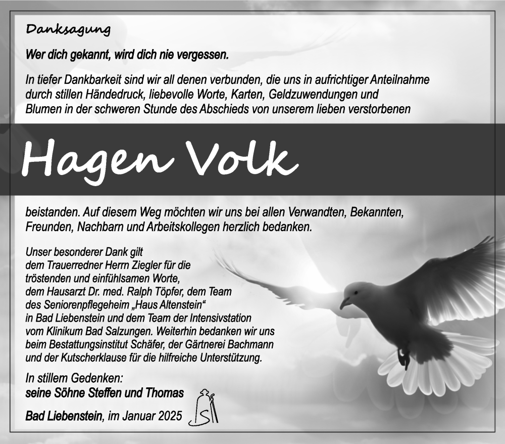Hier finden Sie alle Traueranzeigen aus der Zeitung, die bisher für Hagen Volk erschienen sind. Weitere Traueranzeigen, die in der Zeitung erscheinen, werden hier ebenfalls aufgelistet