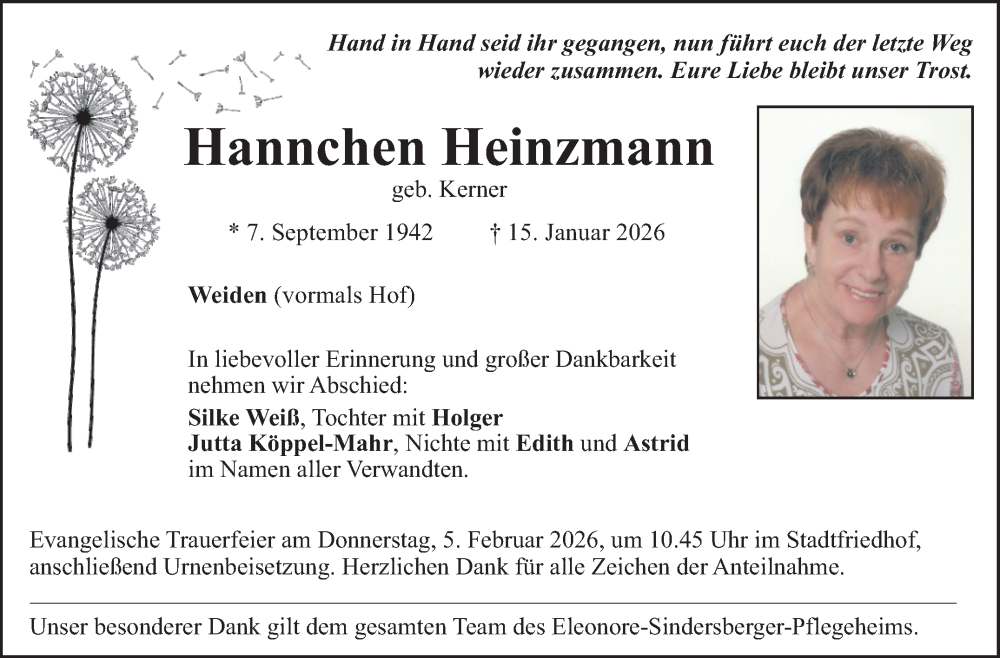 Hier finden Sie alle Traueranzeigen aus der Zeitung, die bisher für Hannchen Heinzmann erschienen sind. Weitere Traueranzeigen, die in der Zeitung erscheinen, werden hier ebenfalls aufgelistet