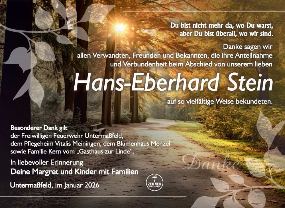 Hier finden Sie alle Traueranzeigen aus der Zeitung, die bisher für Hans-Eberhard Stein erschienen sind. Weitere Traueranzeigen, die in der Zeitung erscheinen, werden hier ebenfalls aufgelistet