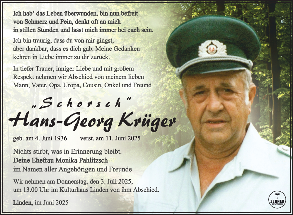 Hier finden Sie alle Traueranzeigen aus der Zeitung, die bisher für Hans-Georg Krüger erschienen sind. Weitere Traueranzeigen, die in der Zeitung erscheinen, werden hier ebenfalls aufgelistet