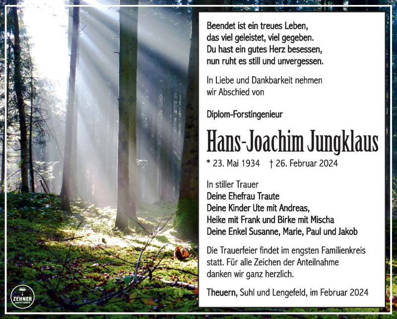 Hier finden Sie alle Traueranzeigen aus der Zeitung, die bisher für Hans-Joachim Jungklaus erschienen sind. Weitere Traueranzeigen, die in der Zeitung erscheinen, werden hier ebenfalls aufgelistet