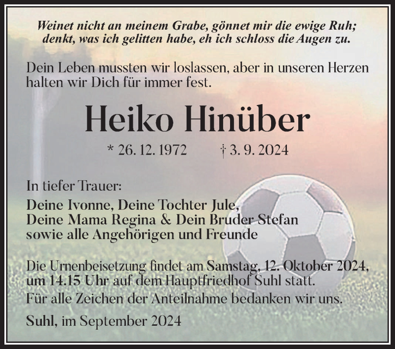 Hier finden Sie alle Traueranzeigen aus der Zeitung, die bisher für Heiko Hinüber erschienen sind. Weitere Traueranzeigen, die in der Zeitung erscheinen, werden hier ebenfalls aufgelistet