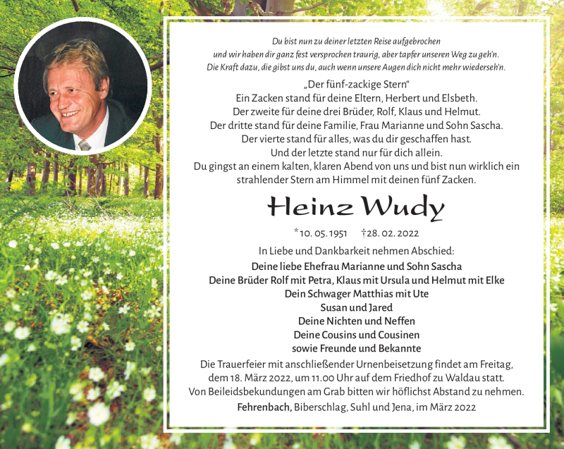 Hier finden Sie alle Traueranzeigen aus der Zeitung, die bisher für Heinz Wudy erschienen sind. Weitere Traueranzeigen, die in der Zeitung erscheinen, werden hier ebenfalls aufgelistet