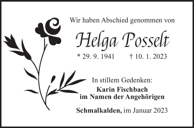 Hier finden Sie alle Traueranzeigen aus der Zeitung, die bisher für Helga Posselt erschienen sind. Weitere Traueranzeigen, die in der Zeitung erscheinen, werden hier ebenfalls aufgelistet