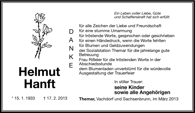 Hier finden Sie alle Traueranzeigen aus der Zeitung, die bisher für Helmut Hanft erschienen sind. Weitere Traueranzeigen, die in der Zeitung erscheinen, werden hier ebenfalls aufgelistet