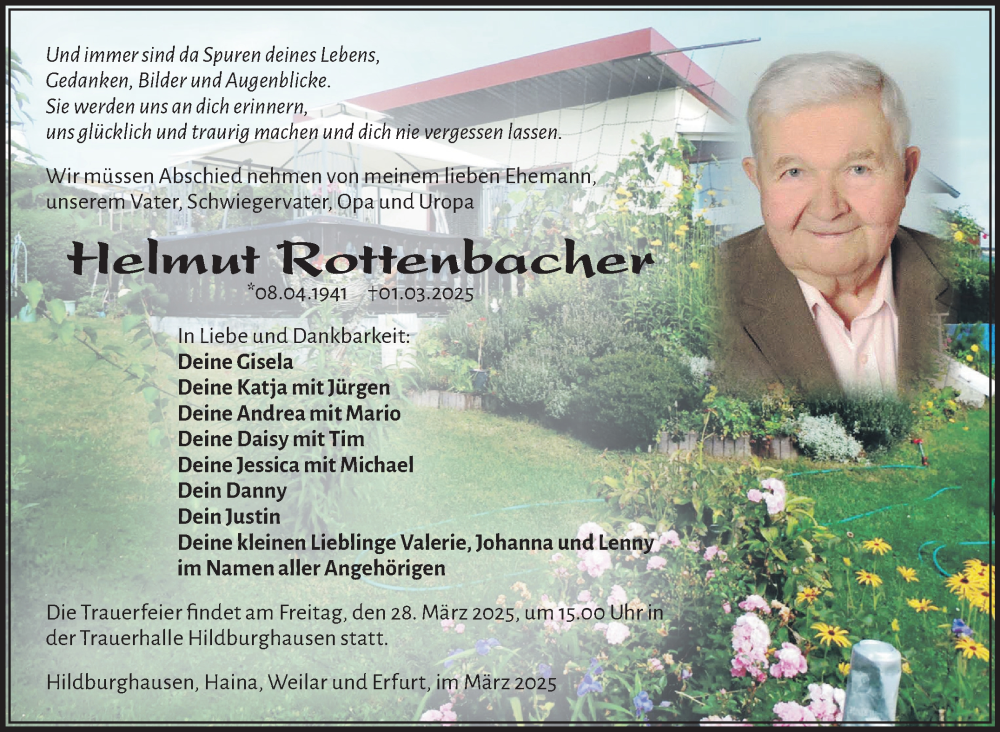 Hier finden Sie alle Traueranzeigen aus der Zeitung, die bisher für Helmut Rottenbacher erschienen sind. Weitere Traueranzeigen, die in der Zeitung erscheinen, werden hier ebenfalls aufgelistet