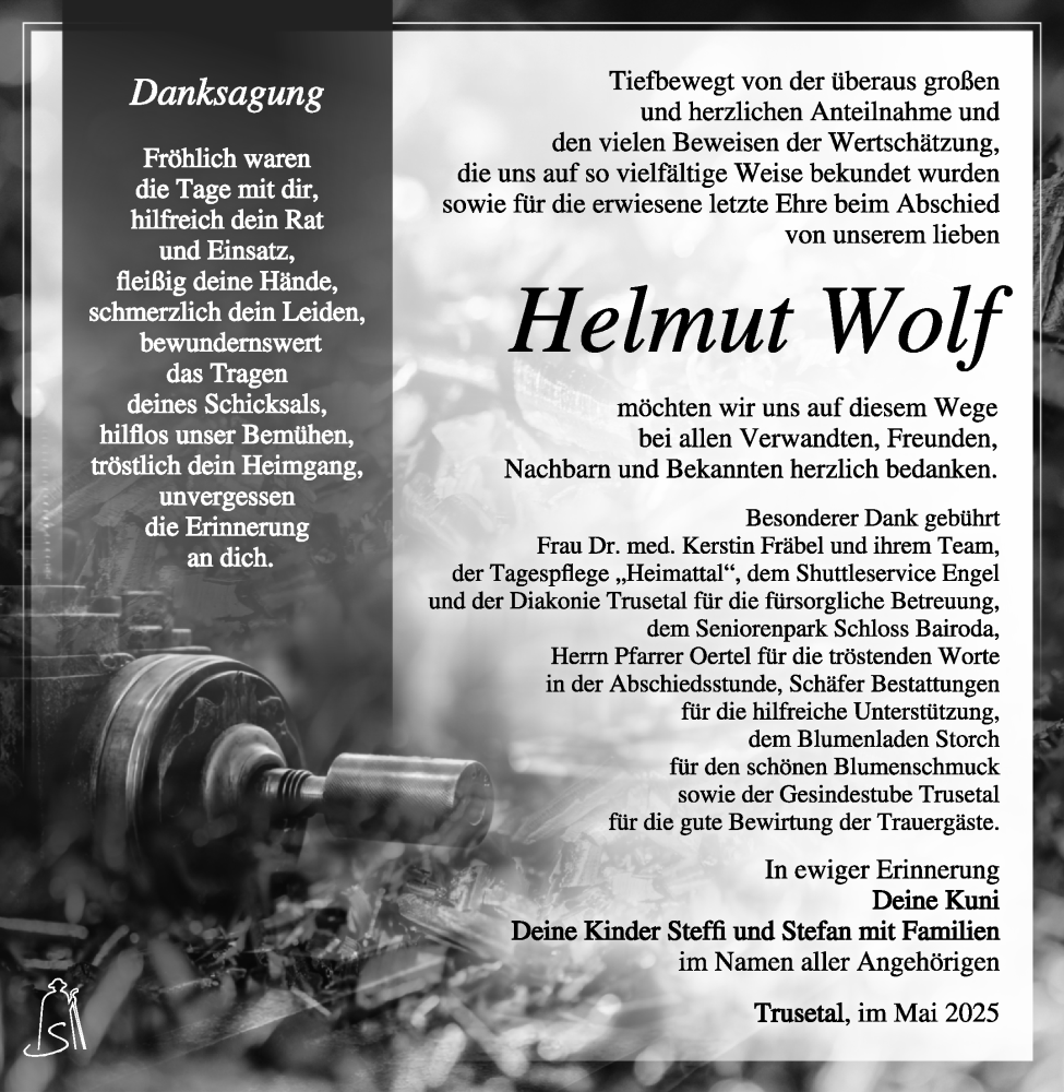 Hier finden Sie alle Traueranzeigen aus der Zeitung, die bisher für Helmut Wolf erschienen sind. Weitere Traueranzeigen, die in der Zeitung erscheinen, werden hier ebenfalls aufgelistet