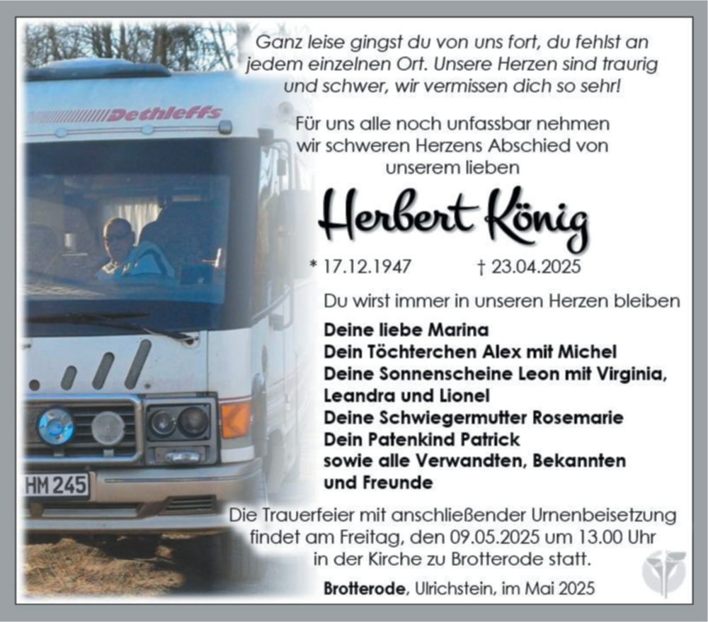 Hier finden Sie alle Traueranzeigen aus der Zeitung, die bisher für Herbert König erschienen sind. Weitere Traueranzeigen, die in der Zeitung erscheinen, werden hier ebenfalls aufgelistet