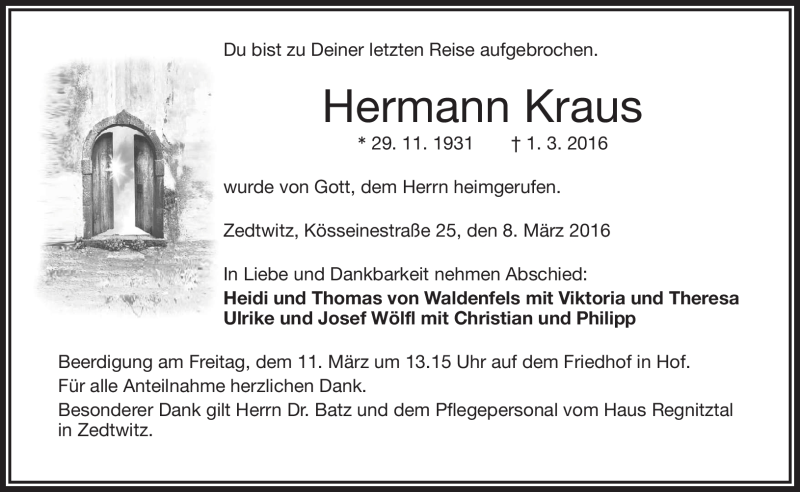 Hier finden Sie alle Traueranzeigen aus der Zeitung, die bisher für Hermann Kraus erschienen sind. Weitere Traueranzeigen, die in der Zeitung erscheinen, werden hier ebenfalls aufgelistet