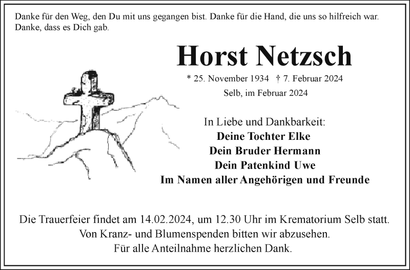 Hier finden Sie alle Traueranzeigen aus der Zeitung, die bisher für Horst Netzsch erschienen sind. Weitere Traueranzeigen, die in der Zeitung erscheinen, werden hier ebenfalls aufgelistet