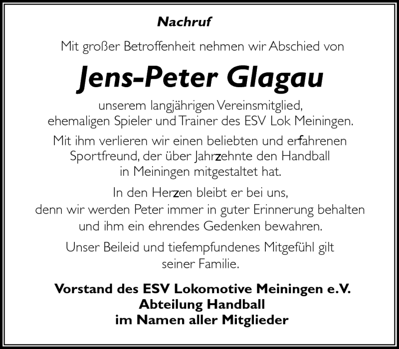 Hier finden Sie alle Traueranzeigen aus der Zeitung, die bisher für Jens-Peter Glagau erschienen sind. Weitere Traueranzeigen, die in der Zeitung erscheinen, werden hier ebenfalls aufgelistet