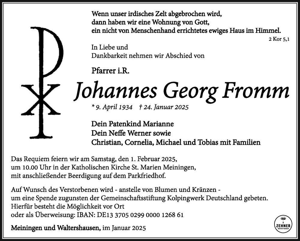 Hier finden Sie alle Traueranzeigen aus der Zeitung, die bisher für Johannes Georg Fromm erschienen sind. Weitere Traueranzeigen, die in der Zeitung erscheinen, werden hier ebenfalls aufgelistet