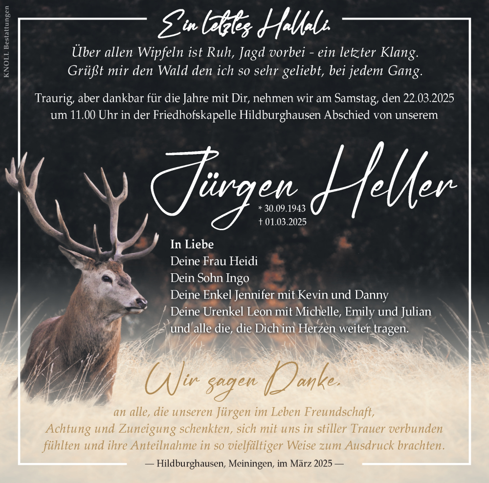 Hier finden Sie alle Traueranzeigen aus der Zeitung, die bisher für Jürgen Heller erschienen sind. Weitere Traueranzeigen, die in der Zeitung erscheinen, werden hier ebenfalls aufgelistet