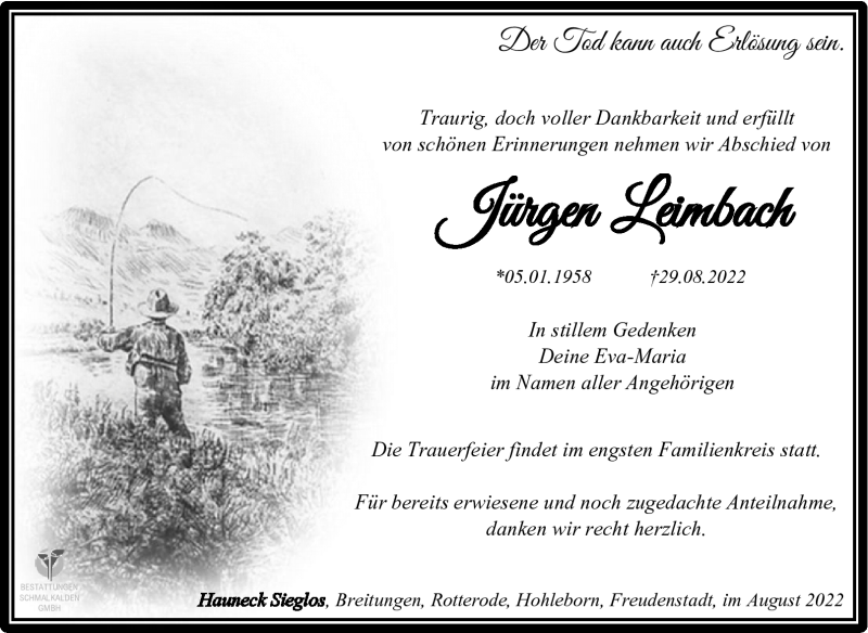 Hier finden Sie alle Traueranzeigen aus der Zeitung, die bisher für Jürgen Leimbach erschienen sind. Weitere Traueranzeigen, die in der Zeitung erscheinen, werden hier ebenfalls aufgelistet
