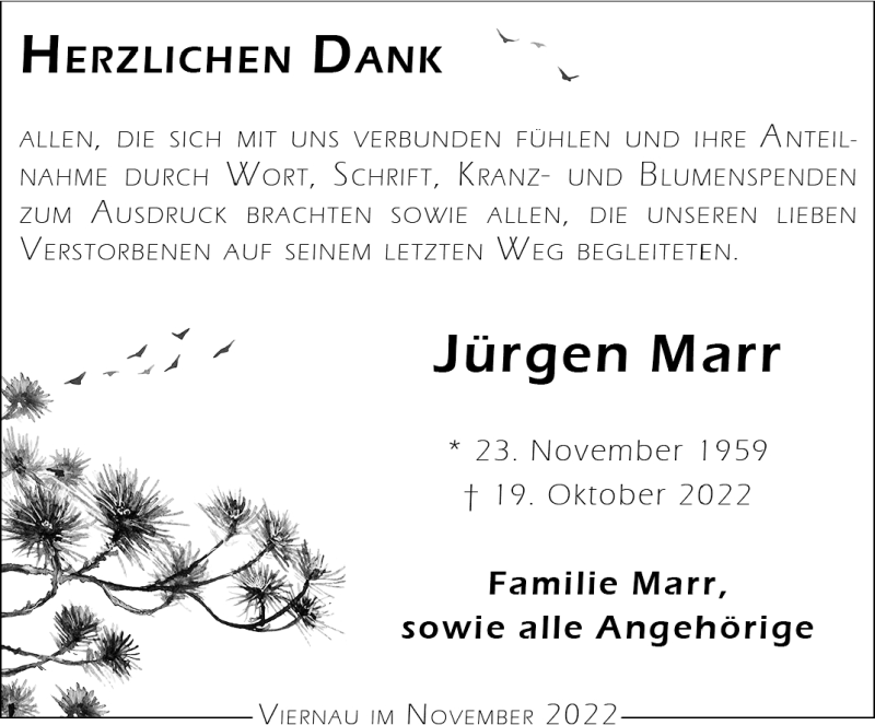 Hier finden Sie alle Traueranzeigen aus der Zeitung, die bisher für Jürgen Marr erschienen sind. Weitere Traueranzeigen, die in der Zeitung erscheinen, werden hier ebenfalls aufgelistet