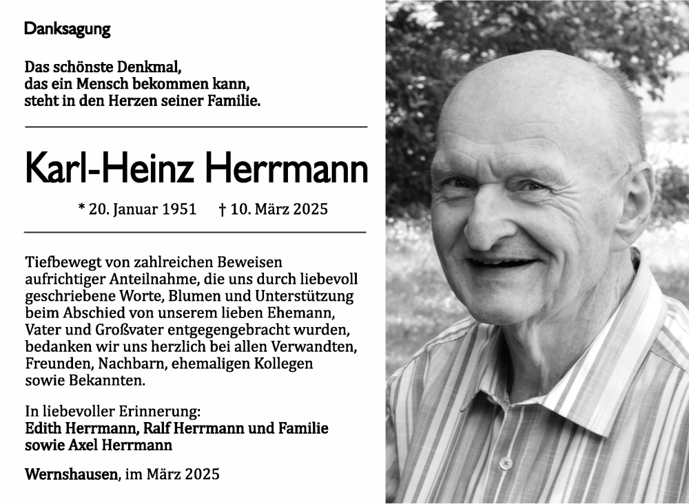 Hier finden Sie alle Traueranzeigen aus der Zeitung, die bisher für Karl-Heinz Herrmann erschienen sind. Weitere Traueranzeigen, die in der Zeitung erscheinen, werden hier ebenfalls aufgelistet