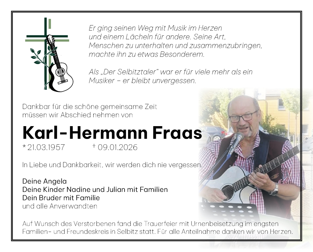 Hier finden Sie alle Traueranzeigen aus der Zeitung, die bisher für Karl-Hermann Fraas erschienen sind. Weitere Traueranzeigen, die in der Zeitung erscheinen, werden hier ebenfalls aufgelistet