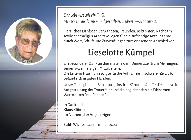 Hier finden Sie alle Traueranzeigen aus der Zeitung, die bisher für Lieselotte Kümpel erschienen sind. Weitere Traueranzeigen, die in der Zeitung erscheinen, werden hier ebenfalls aufgelistet
