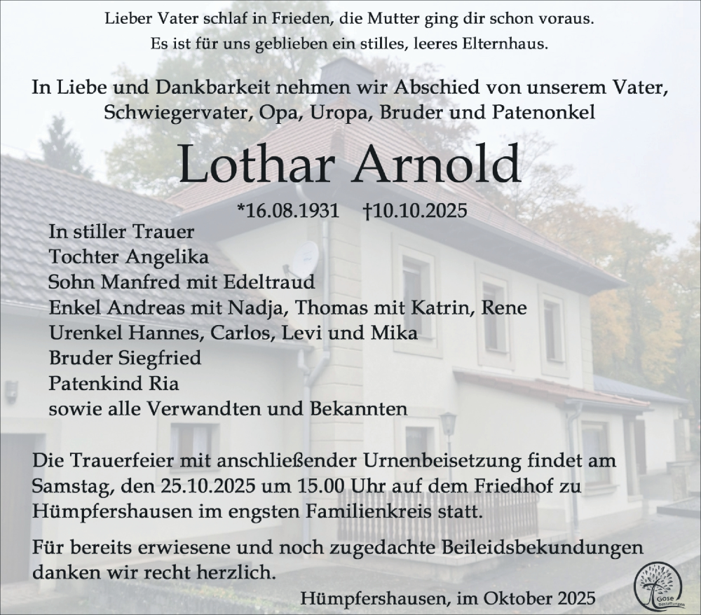 Hier finden Sie alle Traueranzeigen aus der Zeitung, die bisher für Lothar Arnold erschienen sind. Weitere Traueranzeigen, die in der Zeitung erscheinen, werden hier ebenfalls aufgelistet
