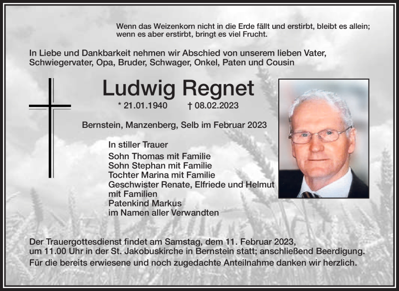 Hier finden Sie alle Traueranzeigen aus der Zeitung, die bisher für Ludwig Regnet erschienen sind. Weitere Traueranzeigen, die in der Zeitung erscheinen, werden hier ebenfalls aufgelistet