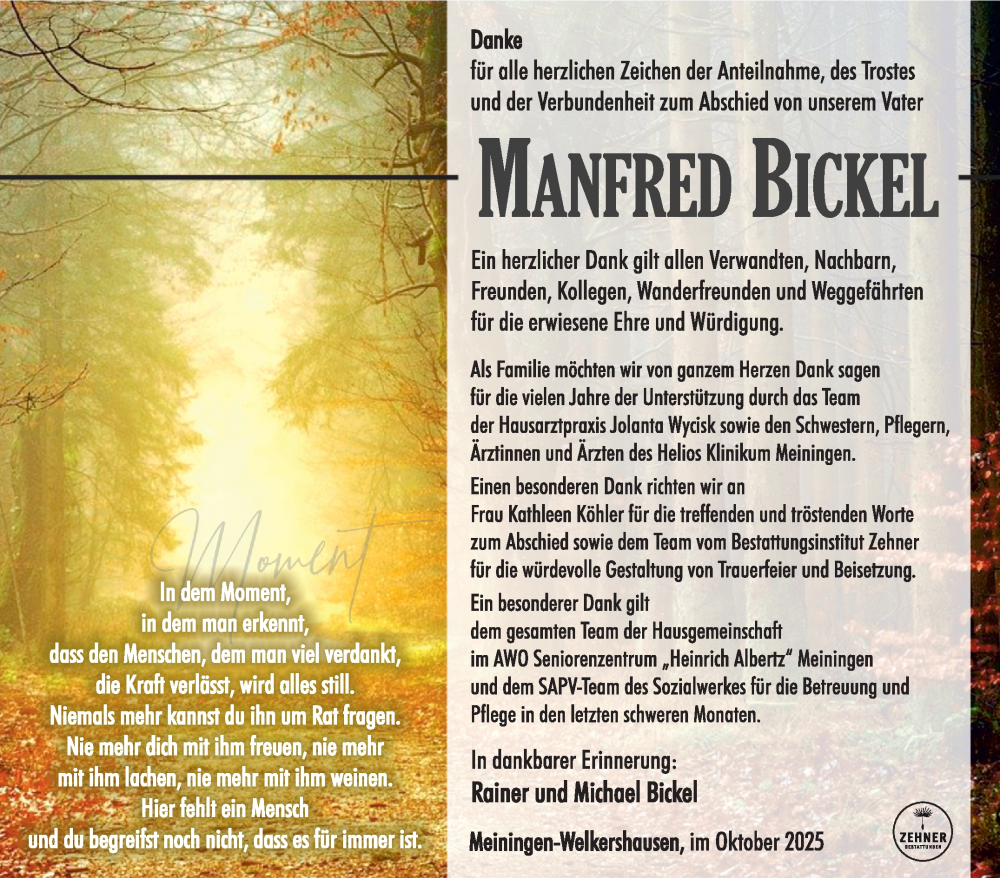 Hier finden Sie alle Traueranzeigen aus der Zeitung, die bisher für Manfred Bickel erschienen sind. Weitere Traueranzeigen, die in der Zeitung erscheinen, werden hier ebenfalls aufgelistet
