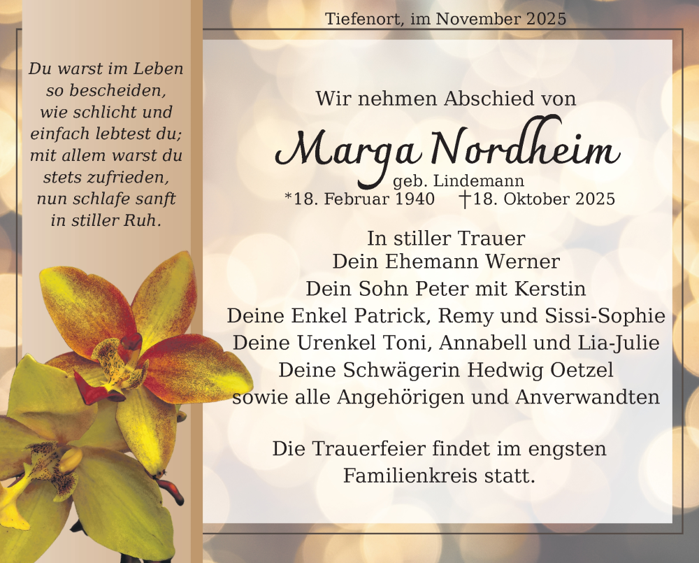 Hier finden Sie alle Traueranzeigen aus der Zeitung, die bisher für Marga Nordheim erschienen sind. Weitere Traueranzeigen, die in der Zeitung erscheinen, werden hier ebenfalls aufgelistet