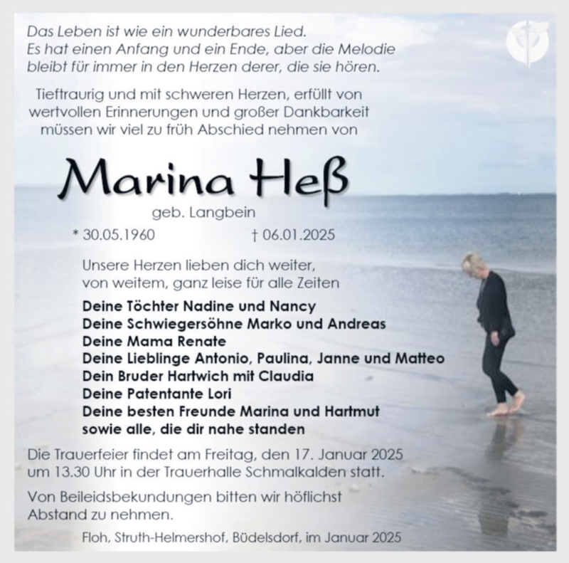 Hier finden Sie alle Traueranzeigen aus der Zeitung, die bisher für Marina Heß erschienen sind. Weitere Traueranzeigen, die in der Zeitung erscheinen, werden hier ebenfalls aufgelistet