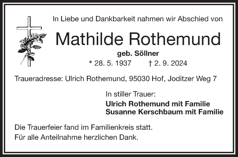 Hier finden Sie alle Traueranzeigen aus der Zeitung, die bisher für Mathilde Rothemund erschienen sind. Weitere Traueranzeigen, die in der Zeitung erscheinen, werden hier ebenfalls aufgelistet