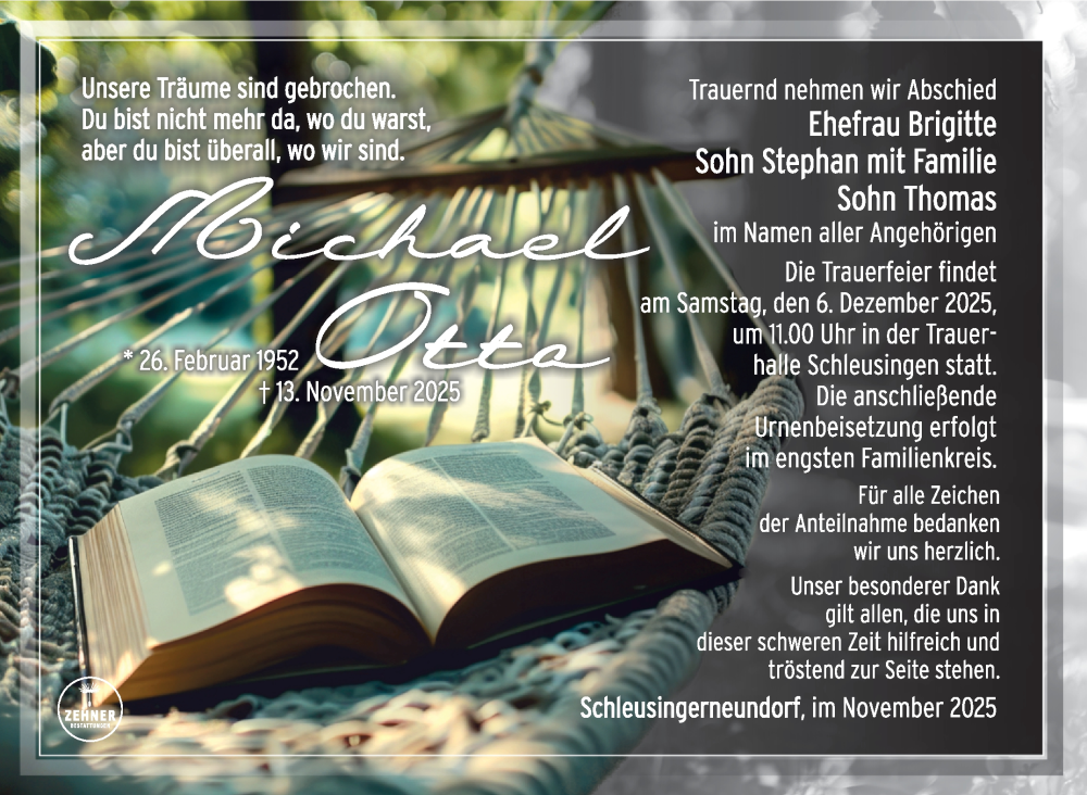 Hier finden Sie alle Traueranzeigen aus der Zeitung, die bisher für Michael Otto erschienen sind. Weitere Traueranzeigen, die in der Zeitung erscheinen, werden hier ebenfalls aufgelistet