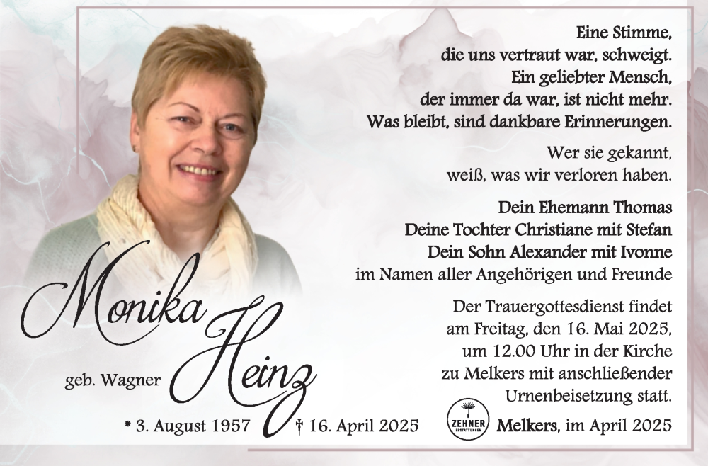 Hier finden Sie alle Traueranzeigen aus der Zeitung, die bisher für Monika Heinz erschienen sind. Weitere Traueranzeigen, die in der Zeitung erscheinen, werden hier ebenfalls aufgelistet